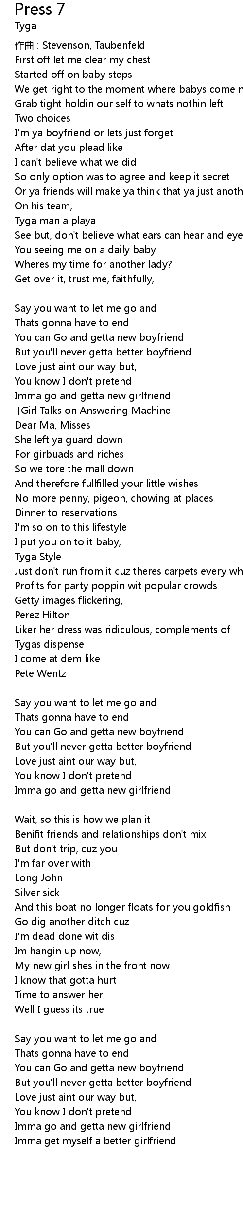 | Imma get myself a better girlfriend [Verse 2] [Girl Talks on Answering Machine] | |