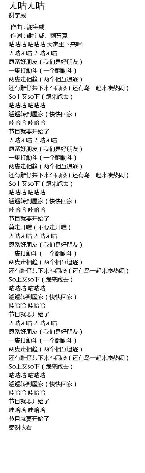 | [01:26.92] | 咕咕咕 咕咕咕 |