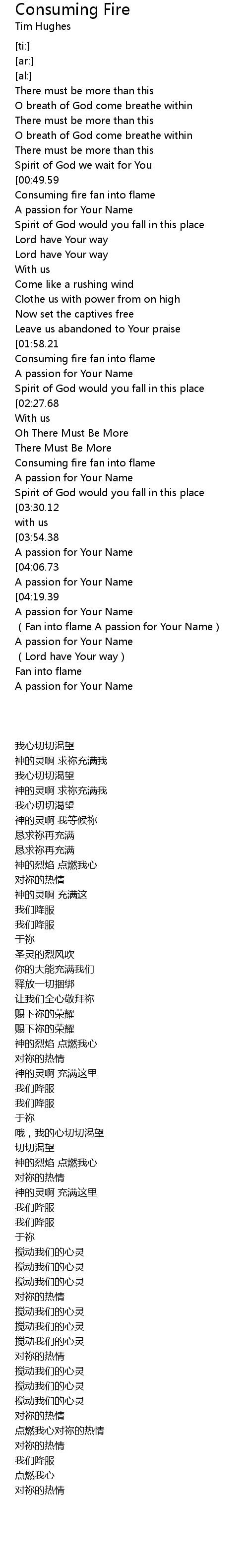 | [04:33.45] | Fan into flame A passion for Your Name |