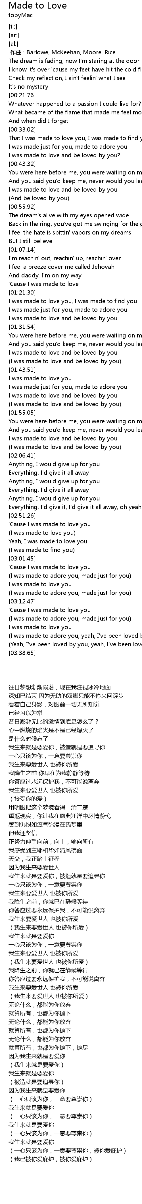 | [01:53.38] | (I was made to love and be loved by you) |