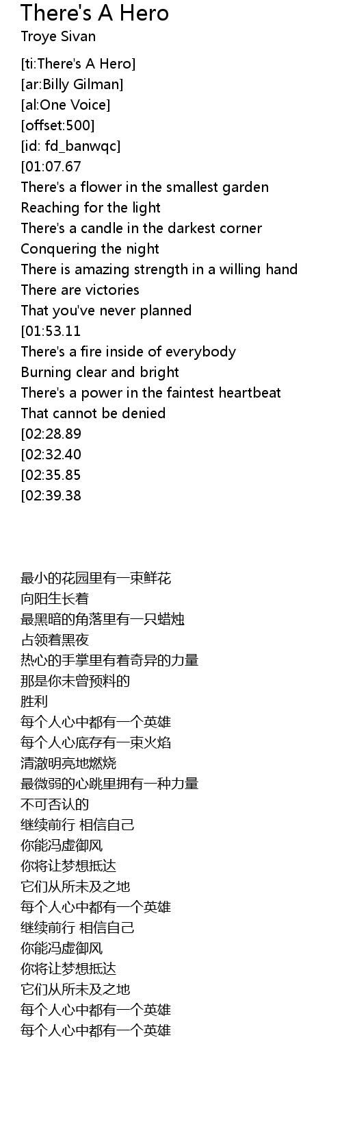 [ti:There's A Hero] |