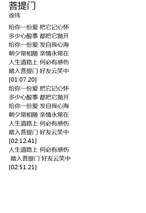 | [02:02.92] | 踏入菩提门 好友云笑中 |