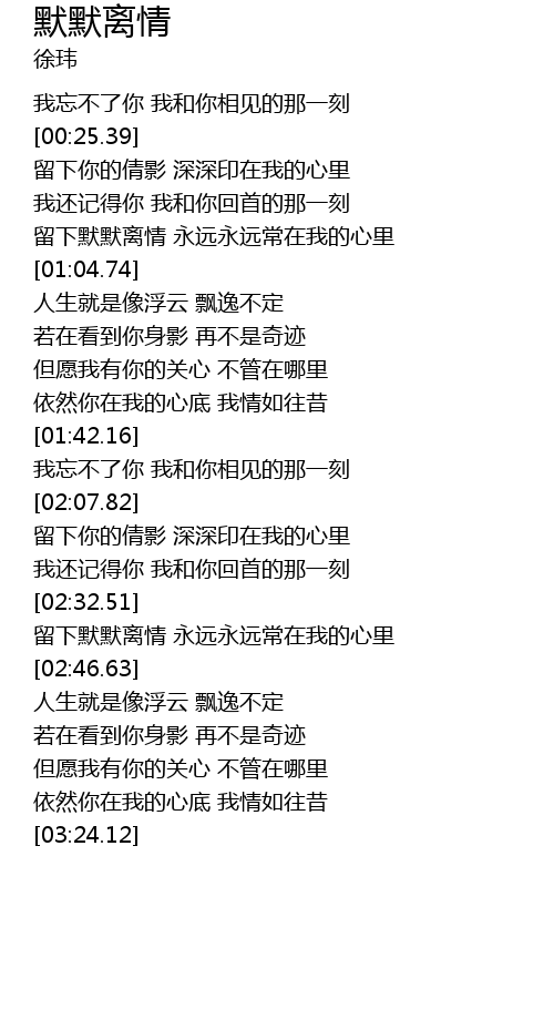 | [00:49.96] | 留下默默离情 永远永远常在我的心里 |