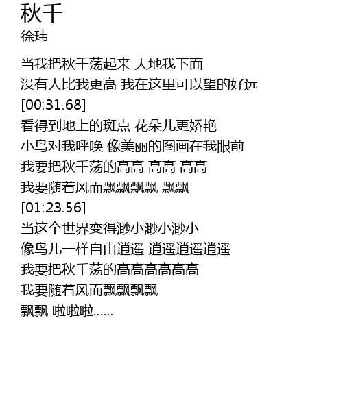 | [00:58.37] | 我要把秋千荡的高高 高高 高高 |