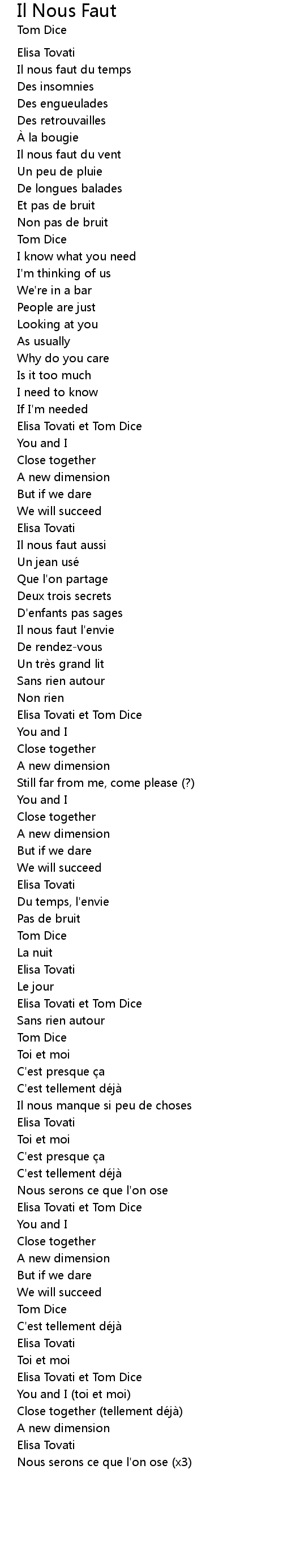 | Song | Il Nous Faut |