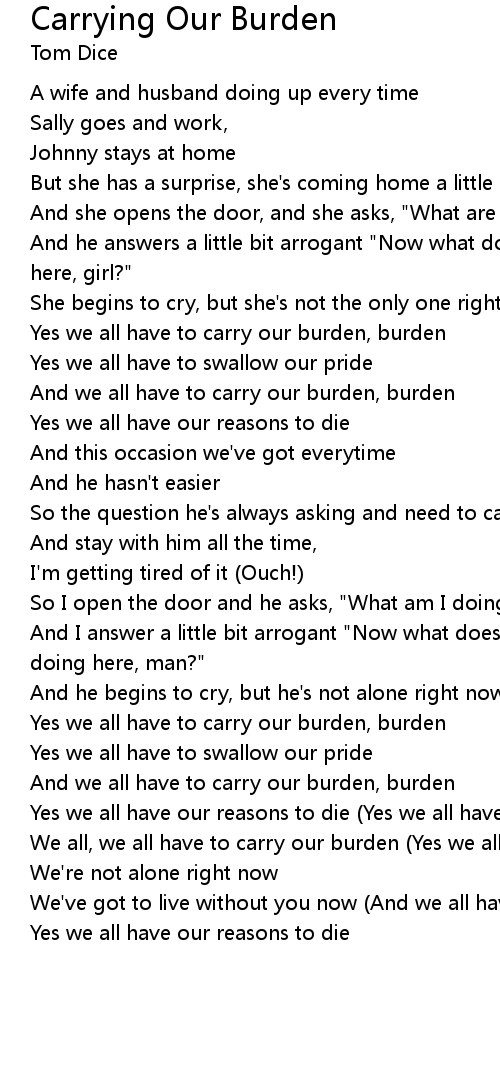 | And we all have to carry our burden, burden | |