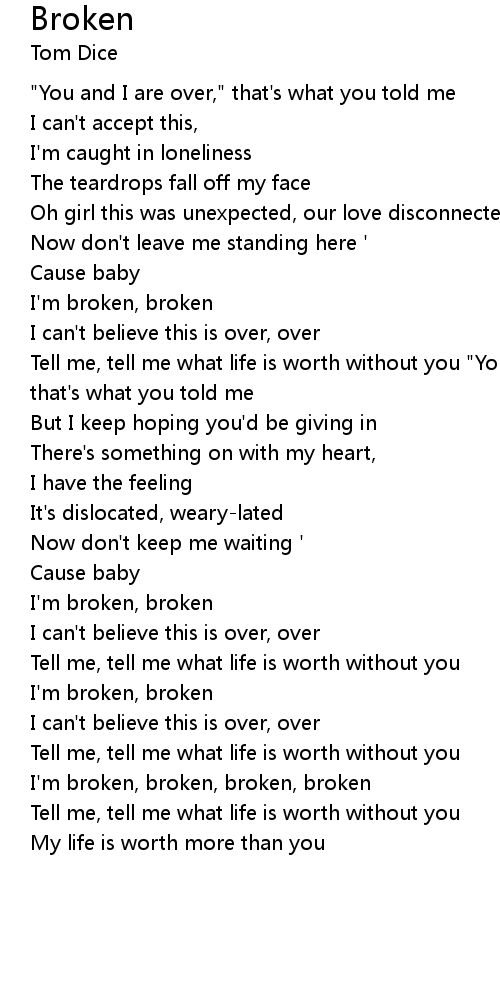 | Tell me, tell me what life is worth without you "You and I are over," 'cause that's what you told me | |
