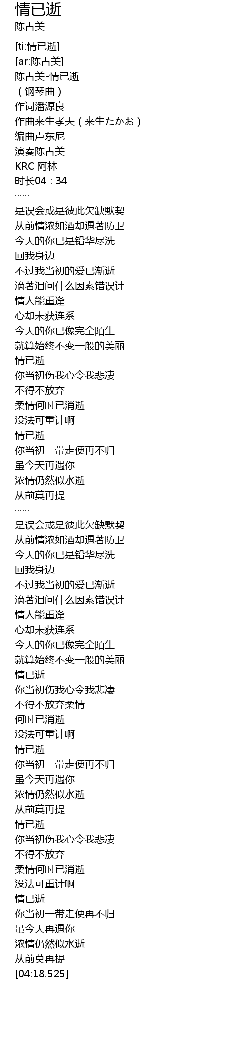 | [00:01.795] | chén zhàn měi qíng yǐ shì |