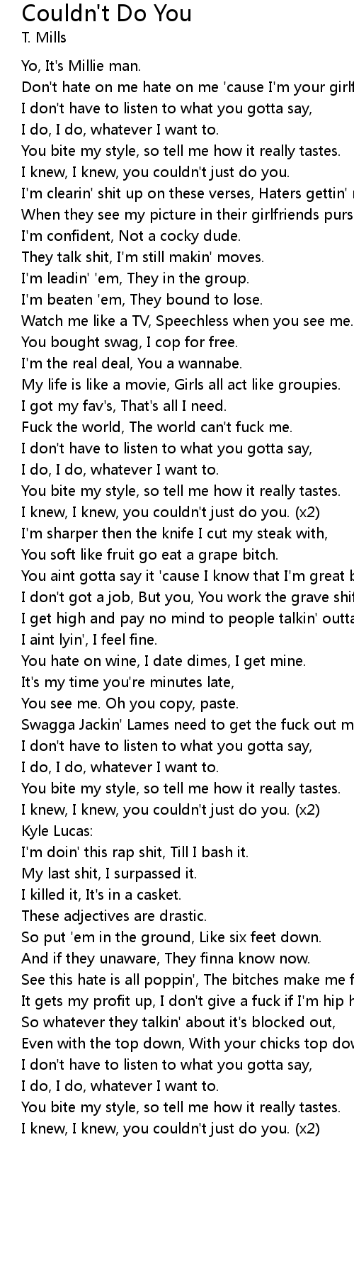 Don't hate on me hate on me 'cause I'm your girlfriends favorite. YF. |