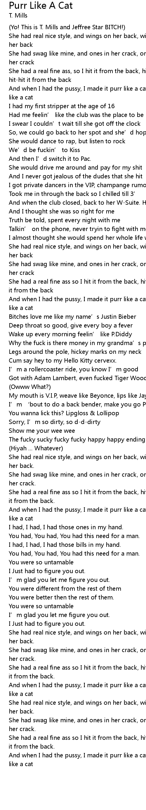 | And when I had the pussy, I made it purr like a cat, purr like a cat, purrpurr like a cat | |