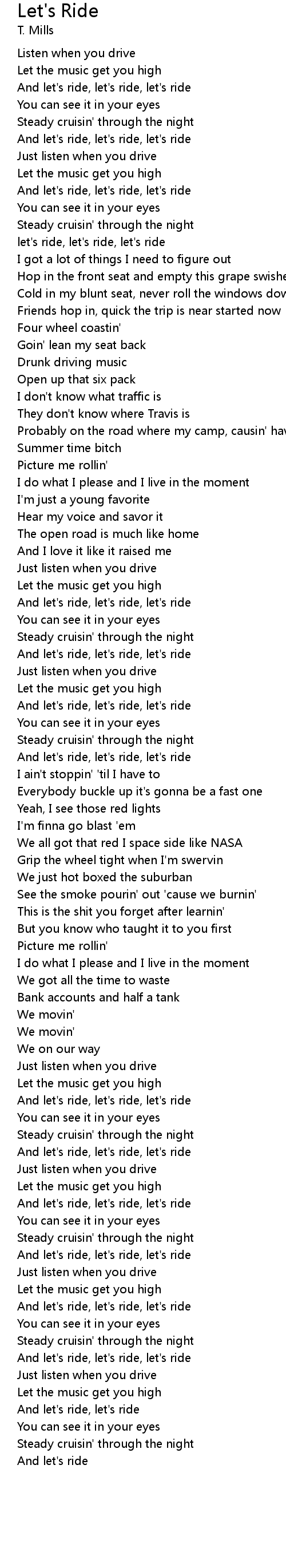 let's ride, let's ride, let's ride |