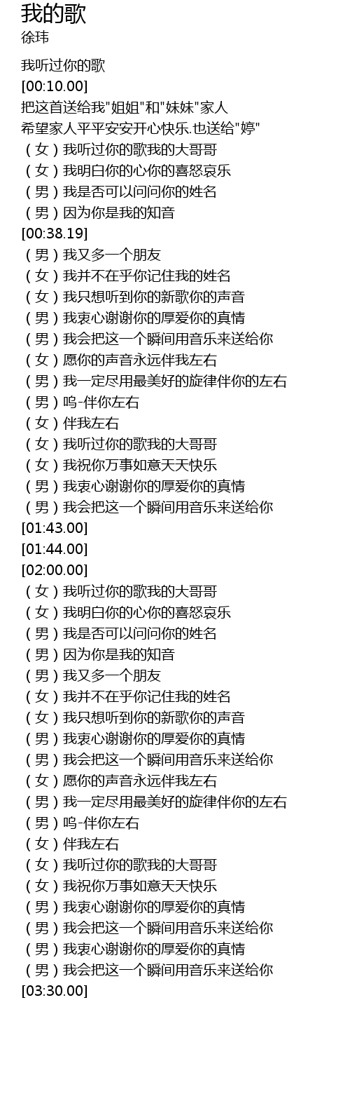 | [03:02.00] | (女)我听过你的歌我的大哥哥 |