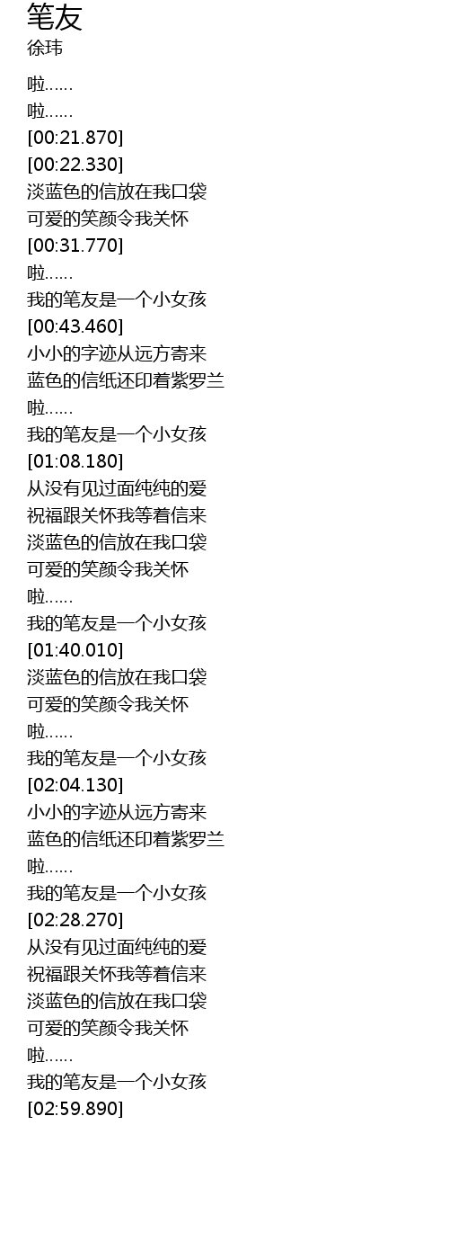 | [02:22.210] | 我的笔友是一个小女孩 |