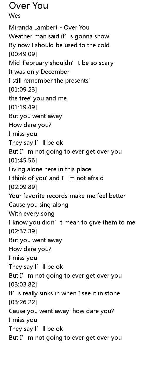 | [00:12.49] | Miranda Lambert - Over You |