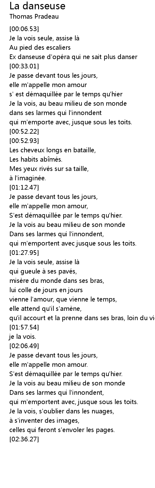 | [00:26.41] | Ex danseuse d' ope ra qui ne sait plus danser |