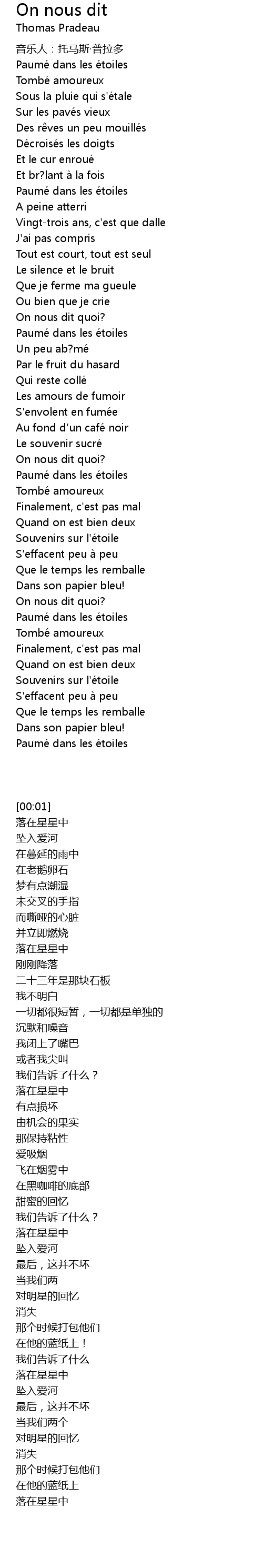 | [00:17] | Paumé dans les é toiles |