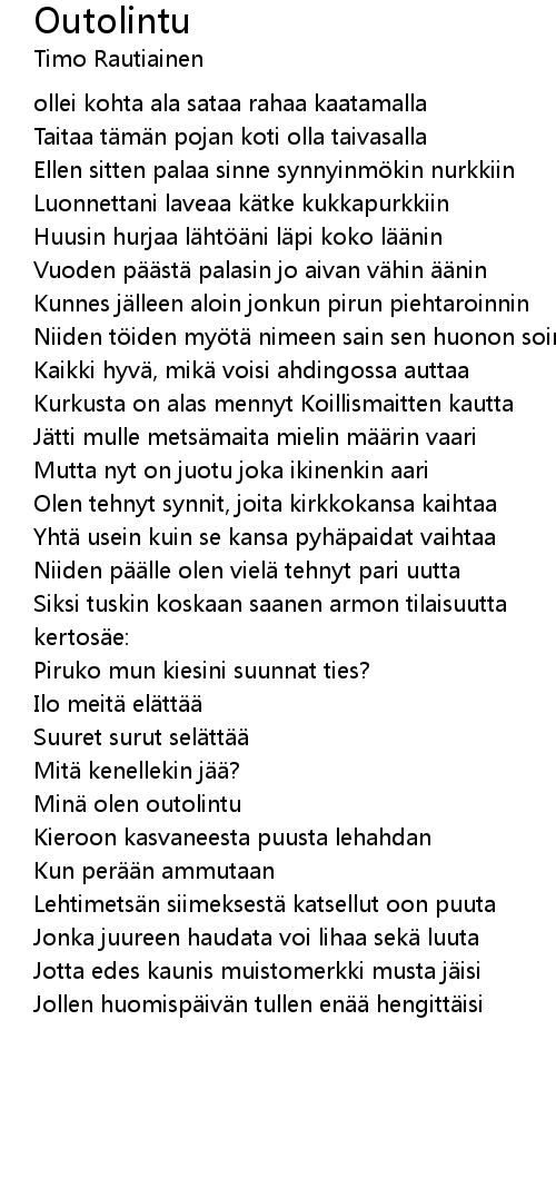 | Niiden t iden my t nimeen sain sen huonon soinnin | |