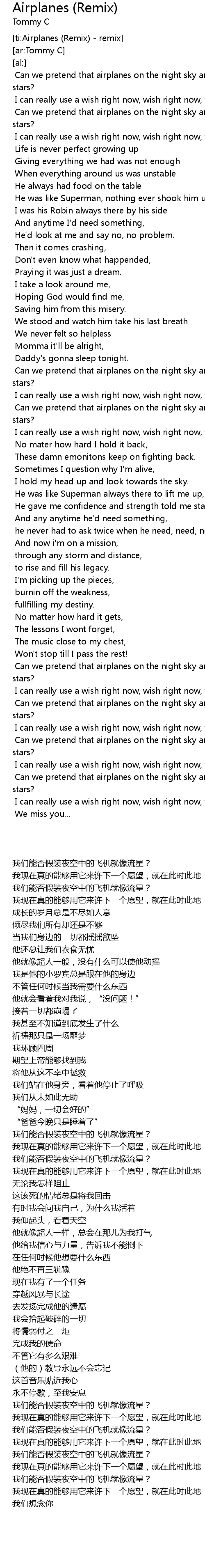 | [ti:Airplanes (Remix) - remix] | |