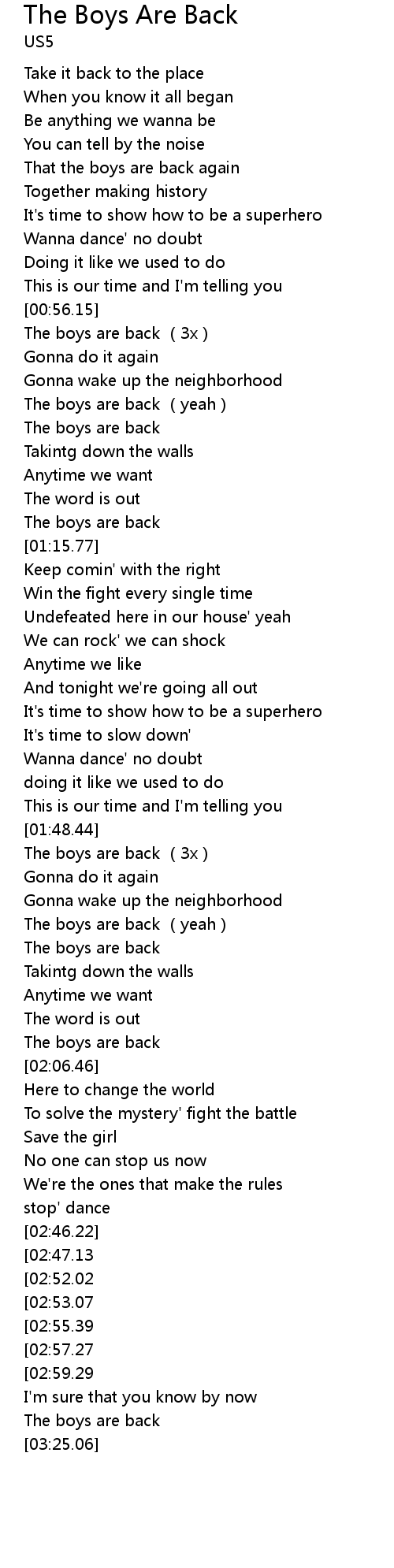 | [00:56.43] | The boys are back (3x) |