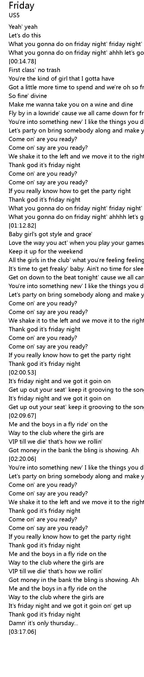 What you gonna do on friday night' friday night' friday night |
