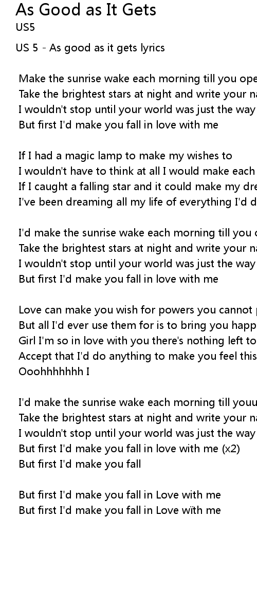 | US 5 As good as it gets lyrics | |