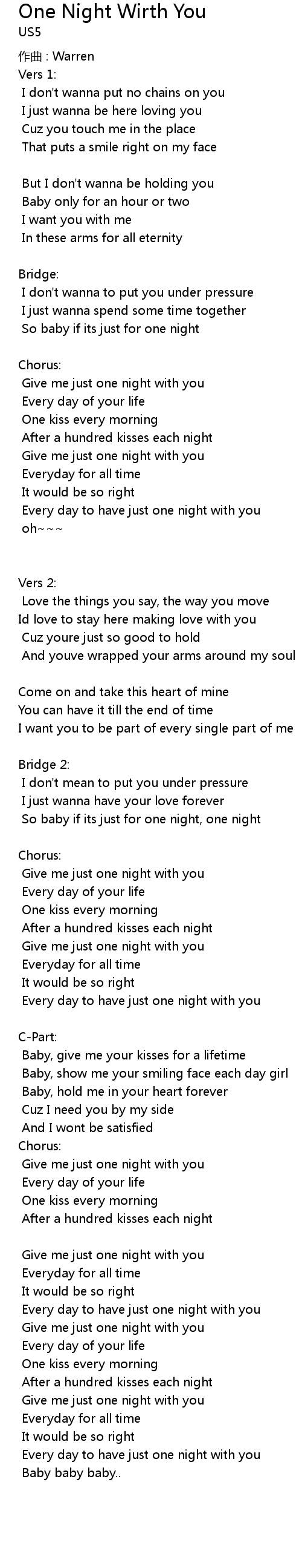 | Song | One Night Wirth You |