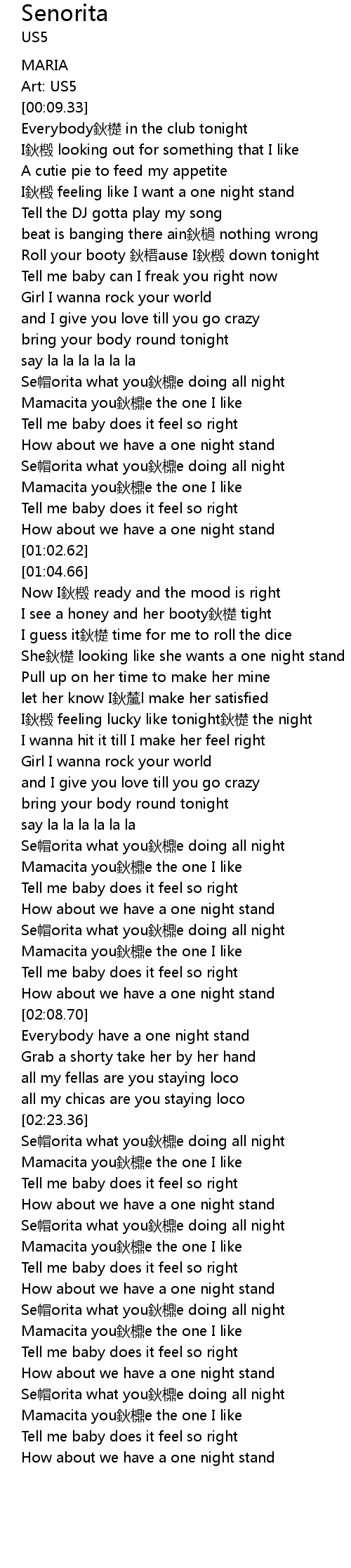 | [00:50.26] | Se帽orita what you鈥檙e doing all night |
