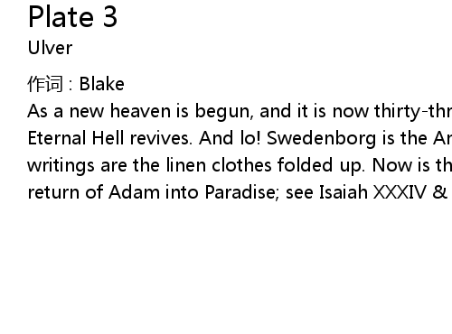 | As a new heaven is begun, and it is now thirtythree years since its advent: the Eternal Hell revives. And lo! Swedenborg is the Angel sitting at the tomb his writings are the linen clothes folded up. Now is the dominion of Edom, the return of Adam into Paradise see Isaiah XXXIV XXXV Chap: |