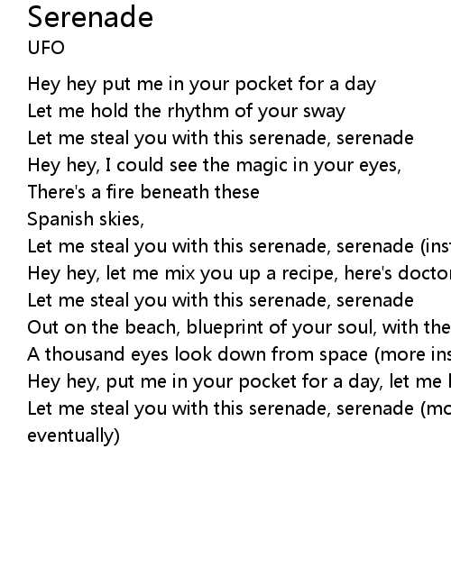 | Let me steal you with this serenade, serenade (more instrumental, fading out eventually) |