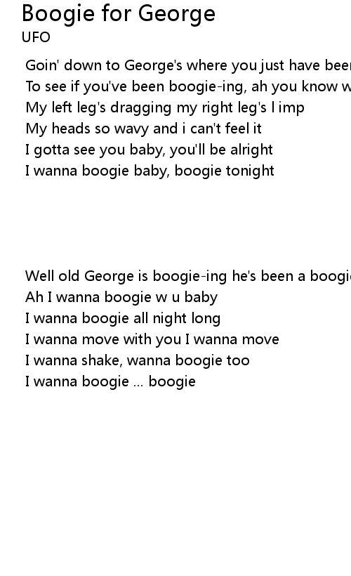 | Well old George is boogie-ing he's been a boogie-ing with you | |