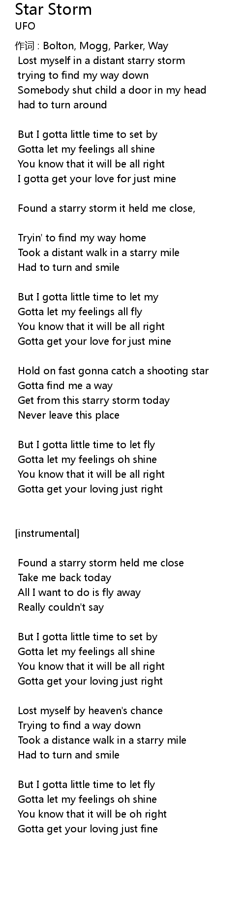 | Found a starry storm held me close | |