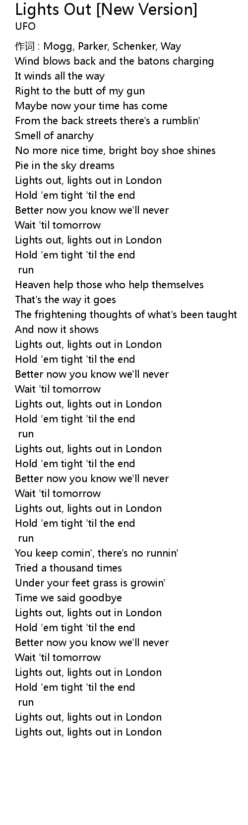 | 作词 : Mogg, Parker, Schenker, Way | |