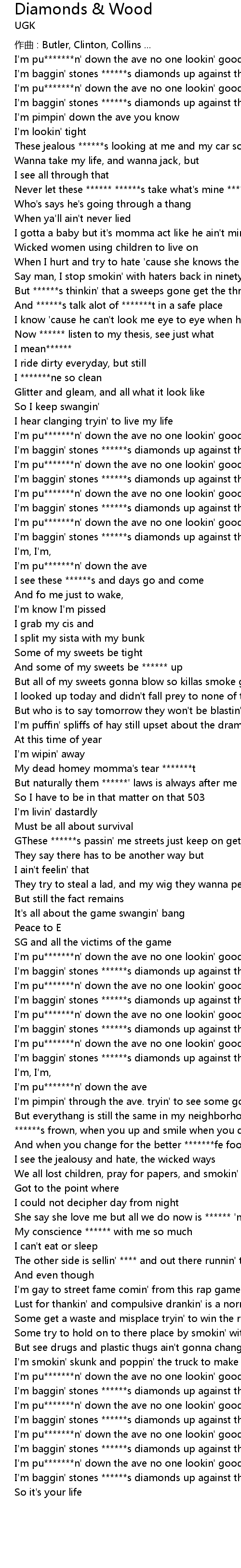| I'm pu*******n' down the ave no one lookin' good | |