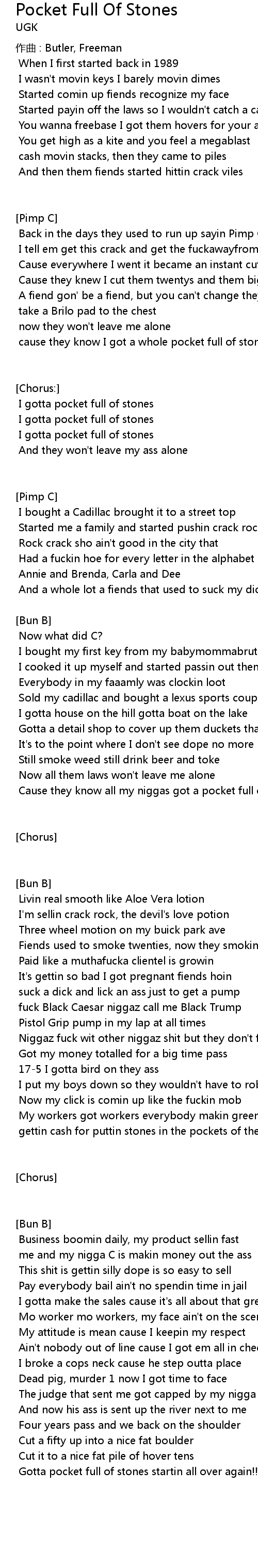 | gettin cash for puttin stones in the pockets of the fiends | |