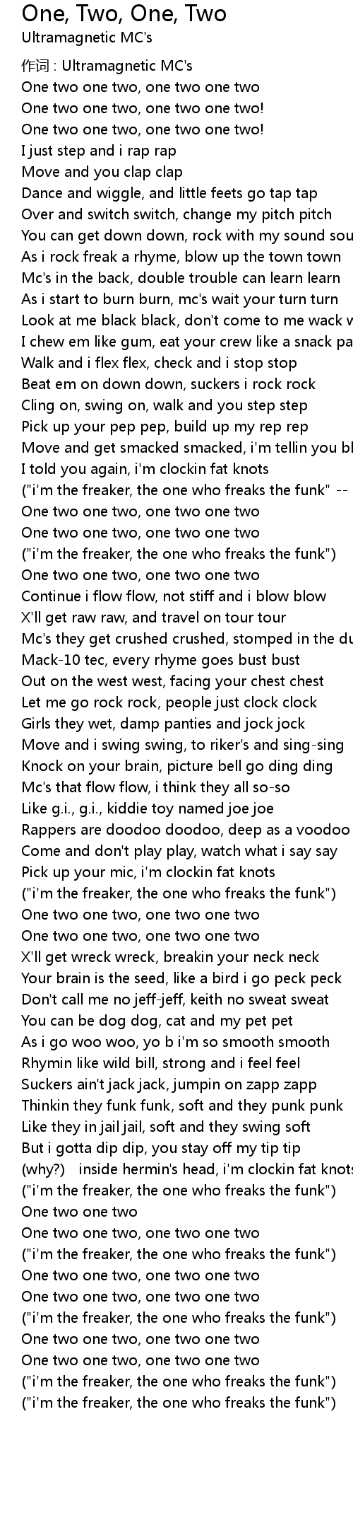 | " i' m the freaker, the one who freaks the funk" cypress hill | |