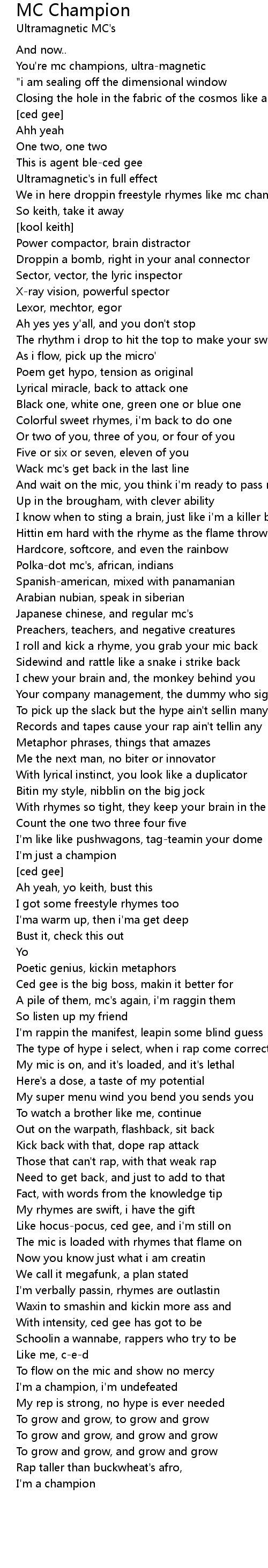 You're mc champions, ultra-magnetic |