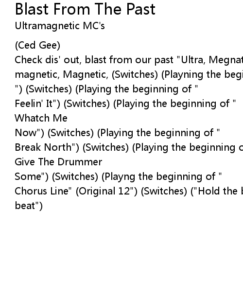 Check dis' out, blast from our past "Ultra, Megnatic, Megnetic, MC's Ultra, magnetic, Magnetic, (Switches) (Playning the begining of " |