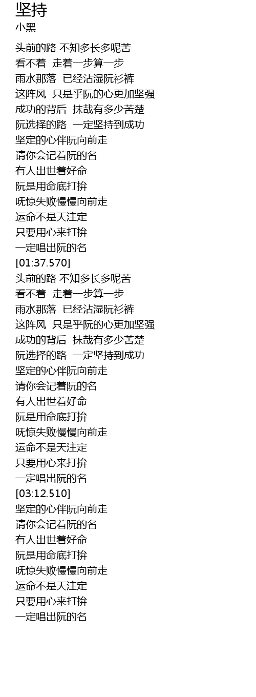 | [02:35.200] | 阮选择的路 一定坚持到成功 |
