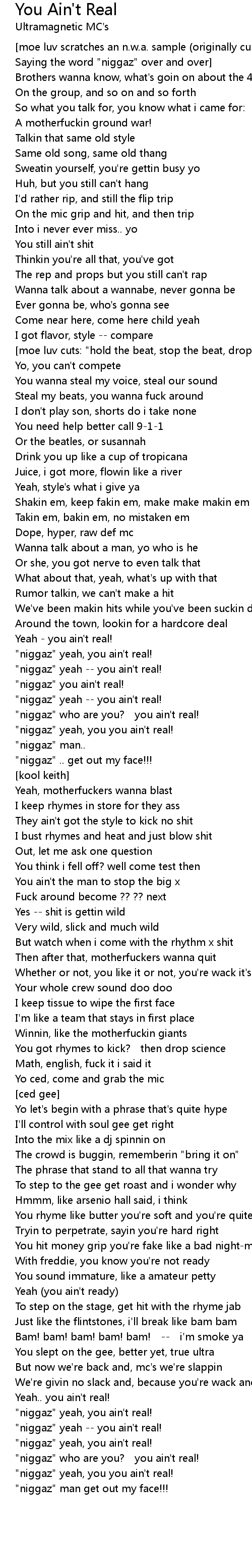 | " niggaz" yeah, you you ain' t real! | |