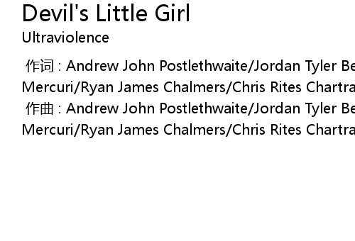 | [00:00.000] | 作词 : Andrew John Postlethwaite/Jordan Tyler Beard/Turi Salvatore Mercuri/Ryan James Chalmers/Chris Rites Chartrand |