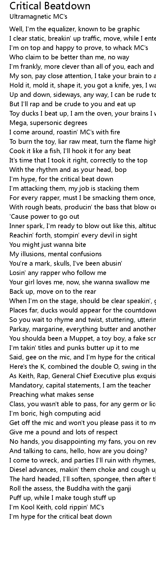 Said, gee on the mic, and I'm hype for the critical beat down |