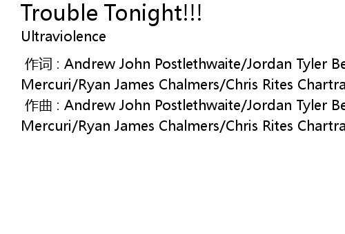 | [00:00.000] | 作词 : Andrew John Postlethwaite/Jordan Tyler Beard/Turi Salvatore Mercuri/Ryan James Chalmers/Chris Rites Chartrand |
