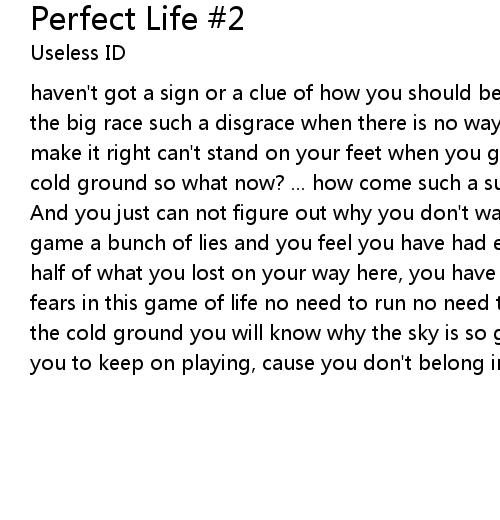 | And you just can not figure out why you don't want to keep on playing, is this game a bunch of lies and you feel you have had enough you want to fill the empty half of what you lost on your way here, you have got to fight through all your fears in this game of life no need to run no need to hide next time you fall on the cold ground you will know why the sky is so grey why there is no need for you to keep on playing, cause you don't belong in this big race at all! |