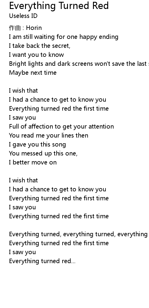 | Everything turned, everything turned, everything turned red | |