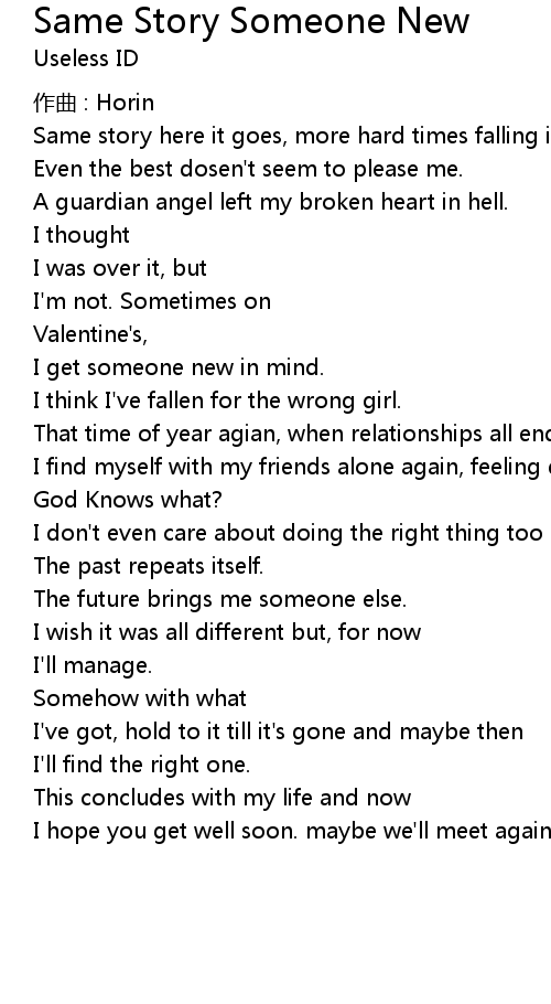 | Song | Same Story Someone New |