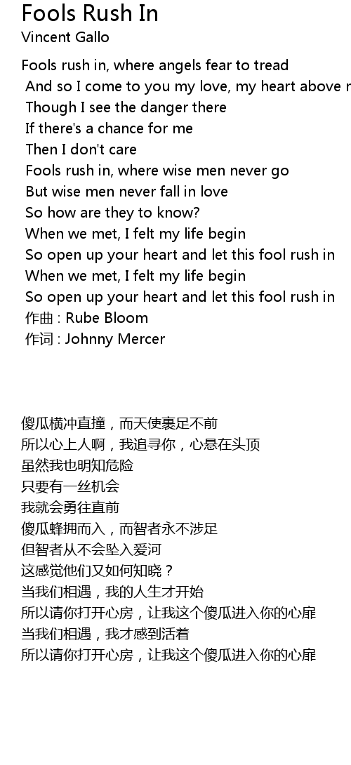 | [01:01] | Fools rush in, where wise men never go |