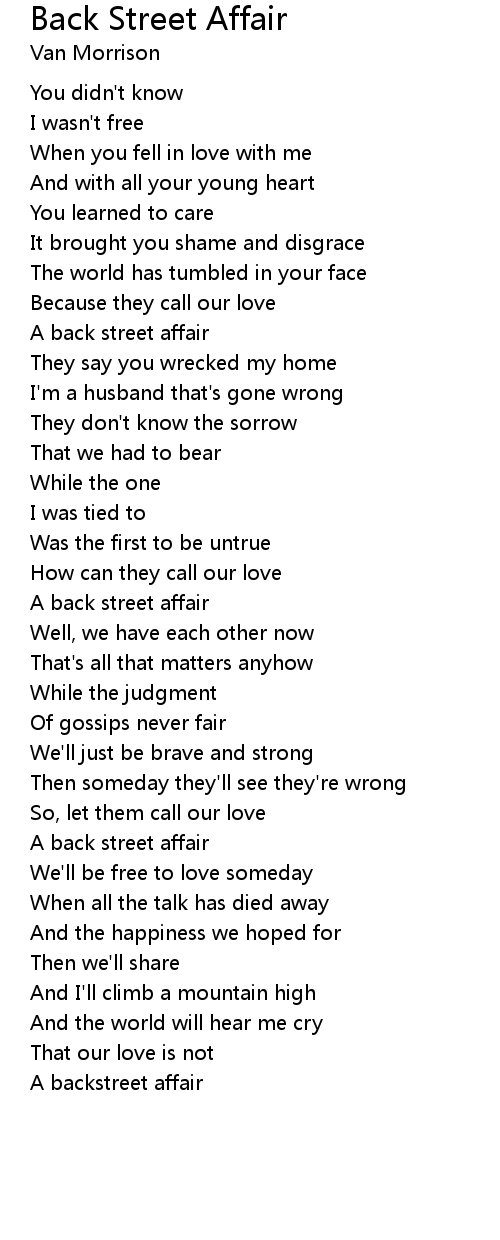 A backstreet affair |