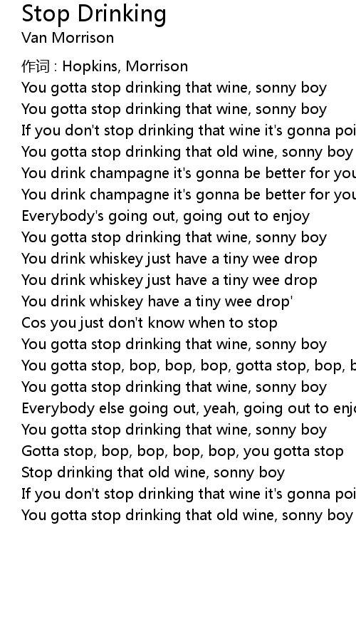 | Song | Stop Drinking |