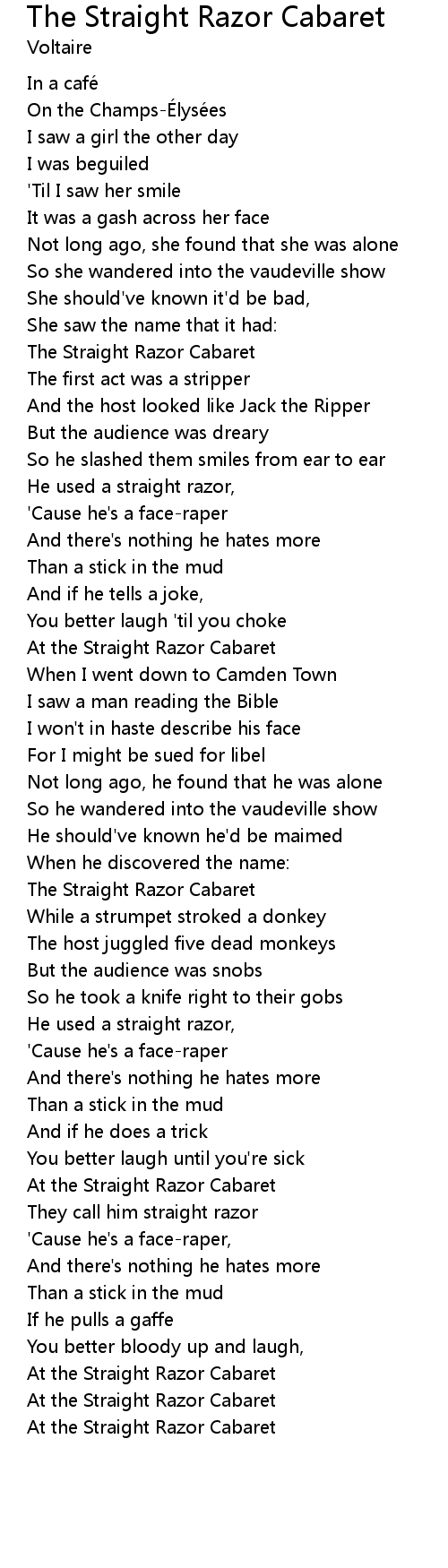 | Song | The Straight Razor Cabaret |