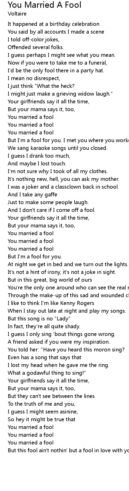 But I'm a fool for you. I met you where you worked, down at the tavern. |